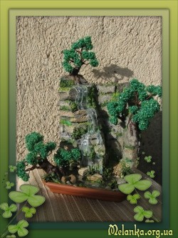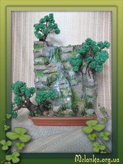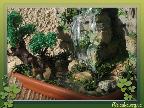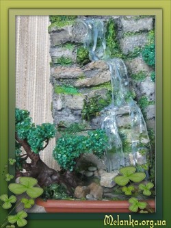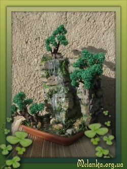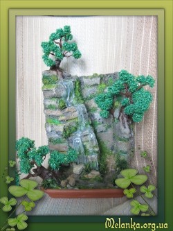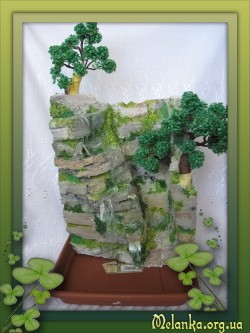 Приклеюємо готові дерева, та оформлюємо підніжжя водопаду сумішшю гіпсу з клеєм ПВА.