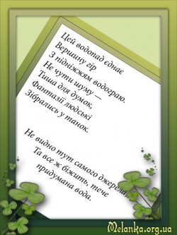 На зворотній стороні водопаду я вставила надрукований віршик. Рядочки у ньому розміщені рівно, як звикло, а от на фото нижче – віршик в двох рамках. Вирізала з попереднього оновлення і ще раз моя нова система запхала все у рамку.