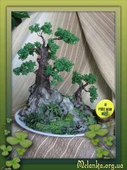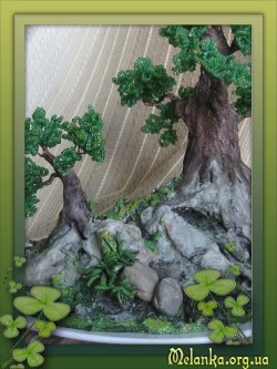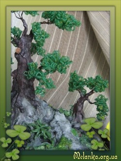 – Підніжжя декоруємо усіма вищеперерахованими предметами, імітуючи траву, мох, каміння, як підказує вам ваша фантазія. Приклеюємо все силіконовим клеєм з клеєвого пістолета.